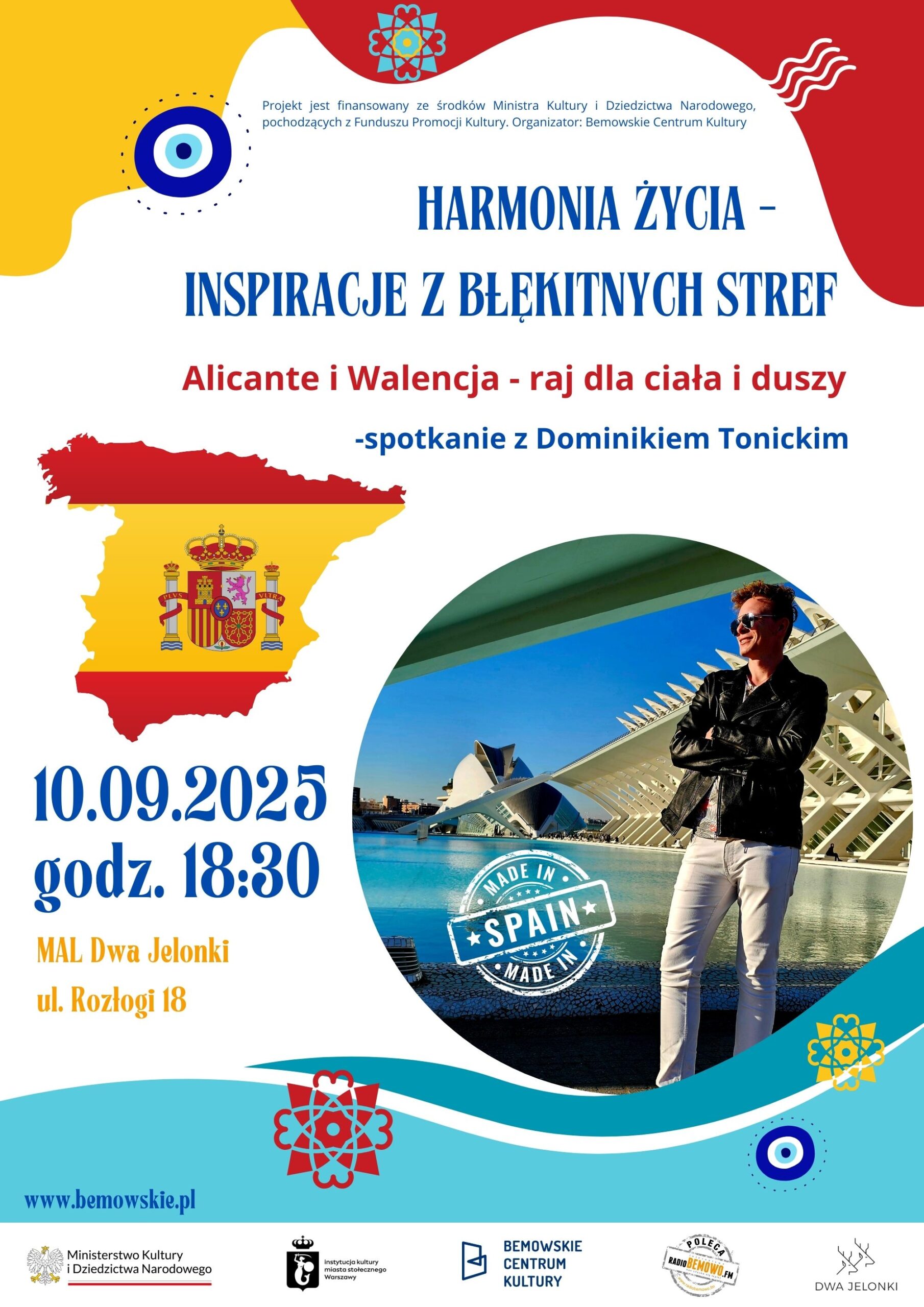 W ramach cyklu „Harmonia Życia: Inspiracje z Błękitnych Stref” odbędzie się spotkanie z Dominikiem Tonickim, blogerem i podróżnikiem, poświęcone hiszpańskim miastom Alicante i Walencji – miejscom, w których słońce, morze i codzienna prostota tworzą idealne warunki do życia w harmonii.