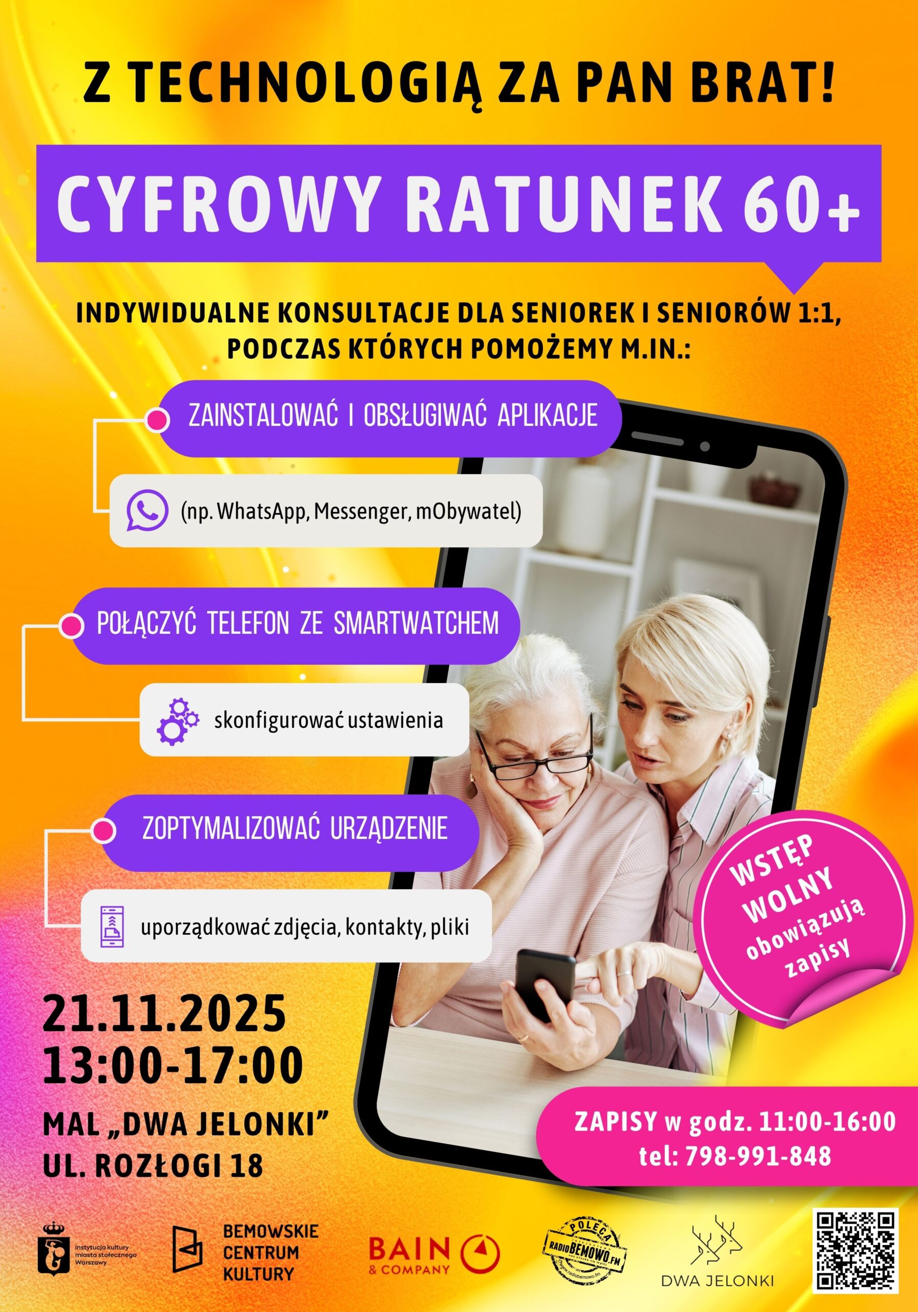 Indywidualne konsultacje dla seniorek i seniorów 1:1, podczas których pomożemy m.in.: