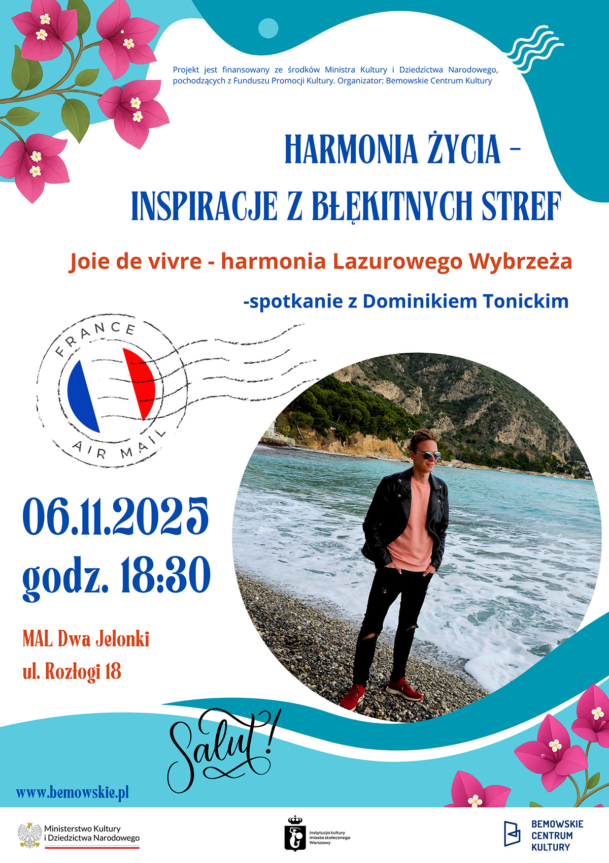 W ramach cyklu „Harmonia Życia: Inspiracje z Błękitnych Stref” odbędzie się spotkanie z Dominikiem Tonickim, podróżnikiem i twórcą kanału „Podróżować Każdy Może”, poświęcone Lazurowemu Wybrzeżu – miejscu, gdzie śródziemnomorska lekkość łączy się z elegancją, sztuką i naturą.